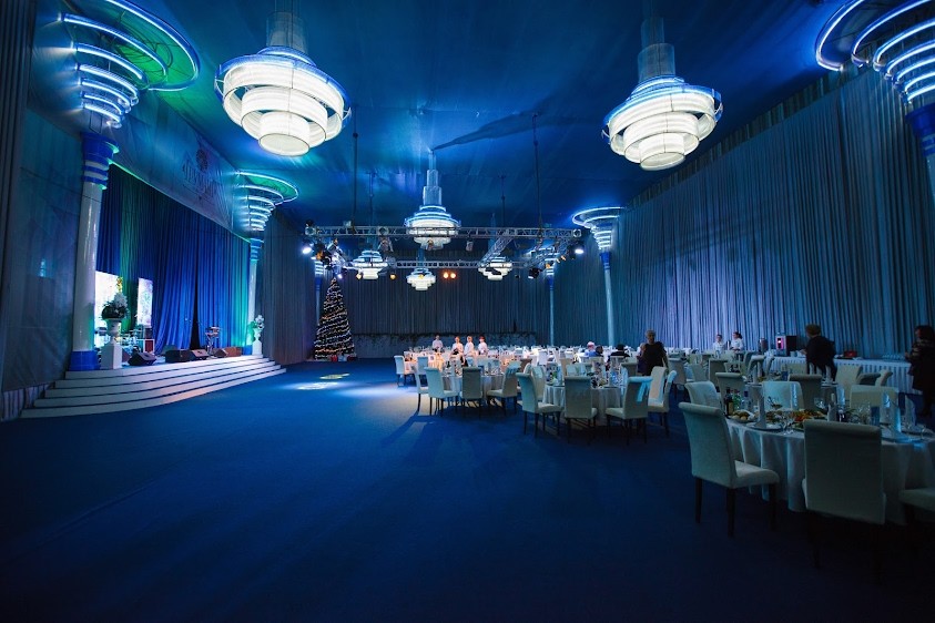До 400 гостей, площадь помещения 920 м2, сцена, LED-экран 5м х 2,8м, гардероб, просторная welcome-зона, которая может использоваться как пространство для организации кофе-брейков.